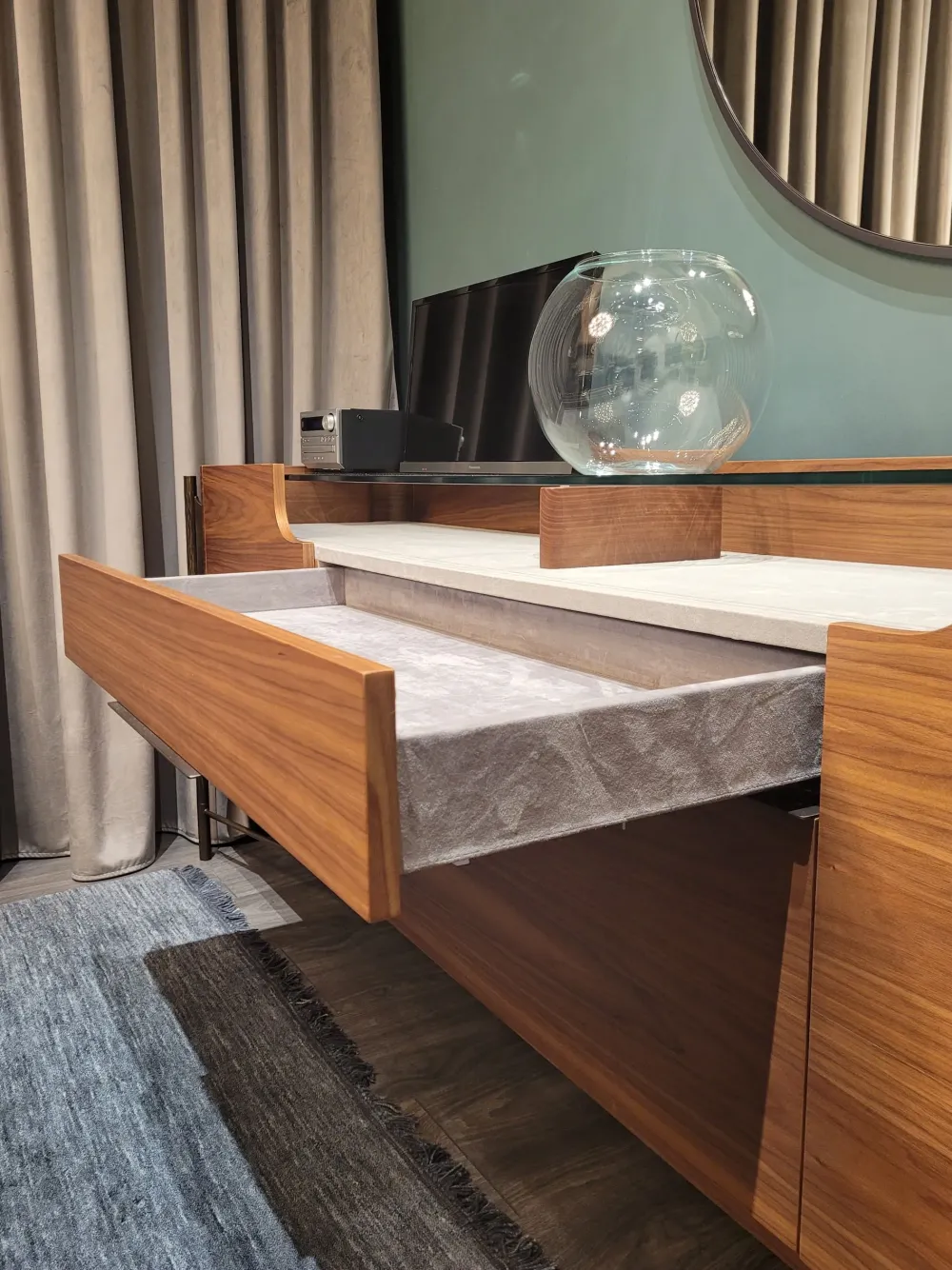 Il vano Sottotop rivestito in econabuk, lo rende un raffinato espositore di oggetti da collezione e di valore.