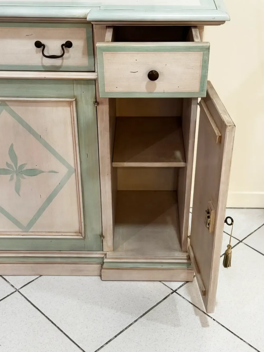 Credenza in stile classico in legno massello laccata e dipinta a mano.