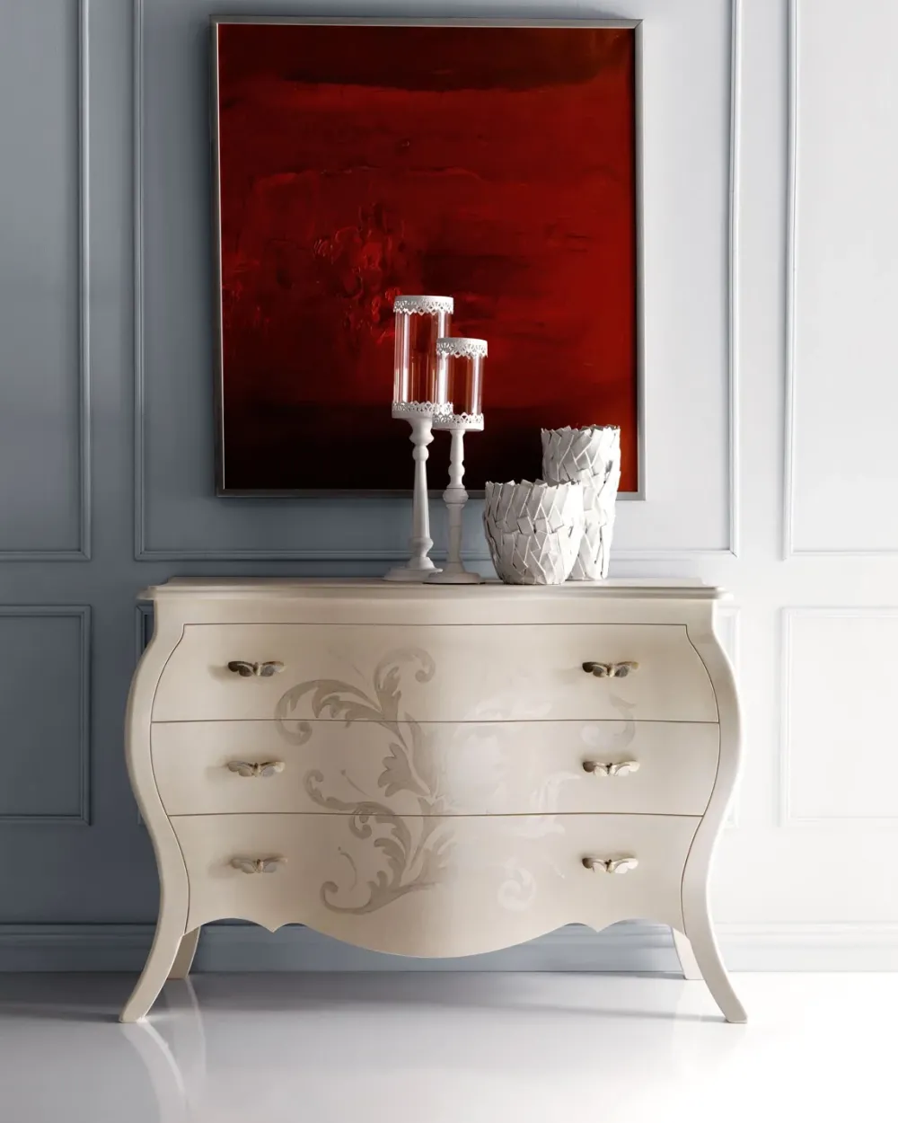Se desideri mobili e complementi in laccato opaco per la tua zona notte, un mobile con cassetti come il modello Campo dei fiori si rivelerà l’ideale.