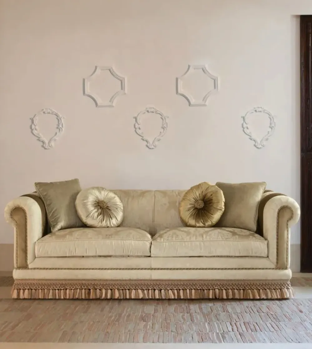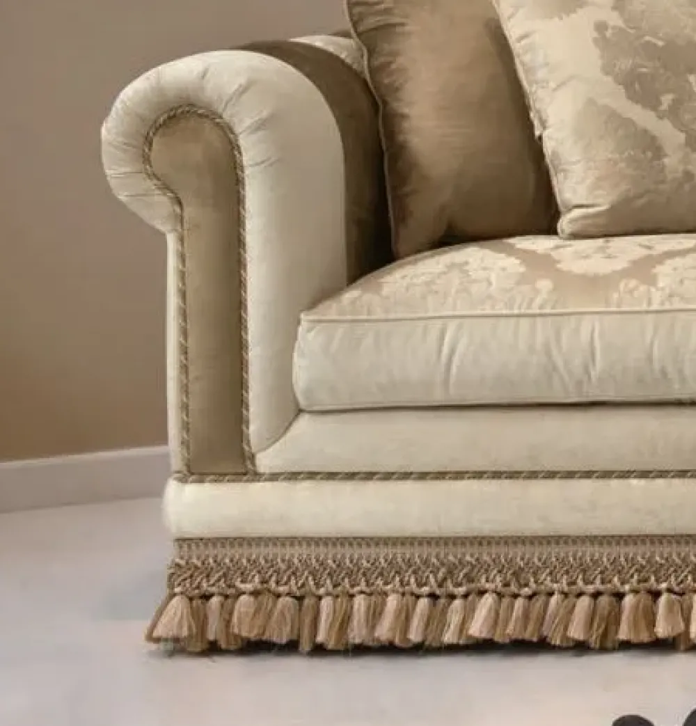 PARTICOLARI IMPORTANTI DEL DIVANO, QUESTO DIVANO HA LA GONNA SOTTO CON I CIUFFI RAMATI, VOLENDO SI PUO AVERE SENZA O DI UN ALTRO COLORE,