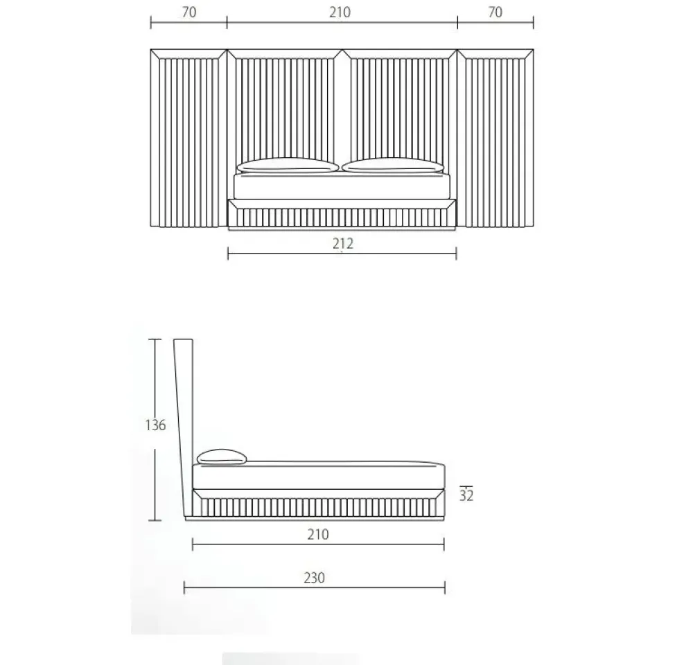 • Headboard in plywood, covered with polyurethane foam.