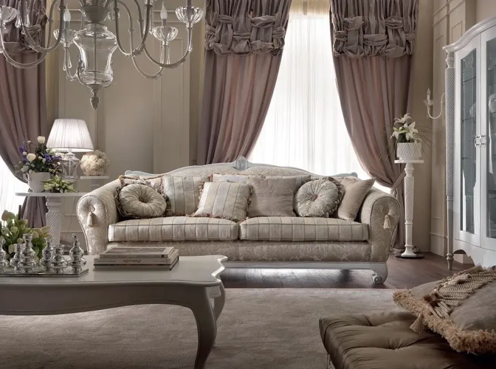 Che tu abbia intenzione di ammobiliare un soggiorno di ogni tipo, che sia di dimensioni più o meno ridotte, Divano cortina in piuma luxury italia visibile in foto sarà capace di trovare la soluzione che ti soddisfi appieno, definendo particolari atmosfere in stile classico che rispecchino i tuoi gusti.
