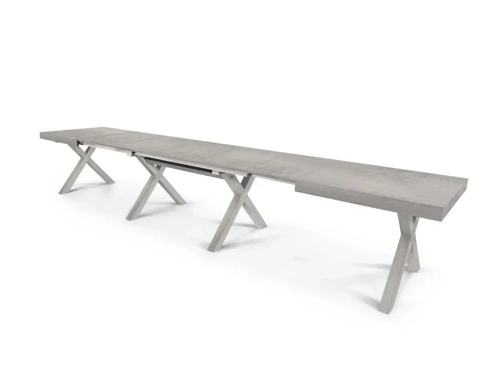 l tavolo allungabile con finitura Beton è perfetto per chi dispone di ampi spazi e desidera un complemento darredo funzionale, resistente ed elegante.