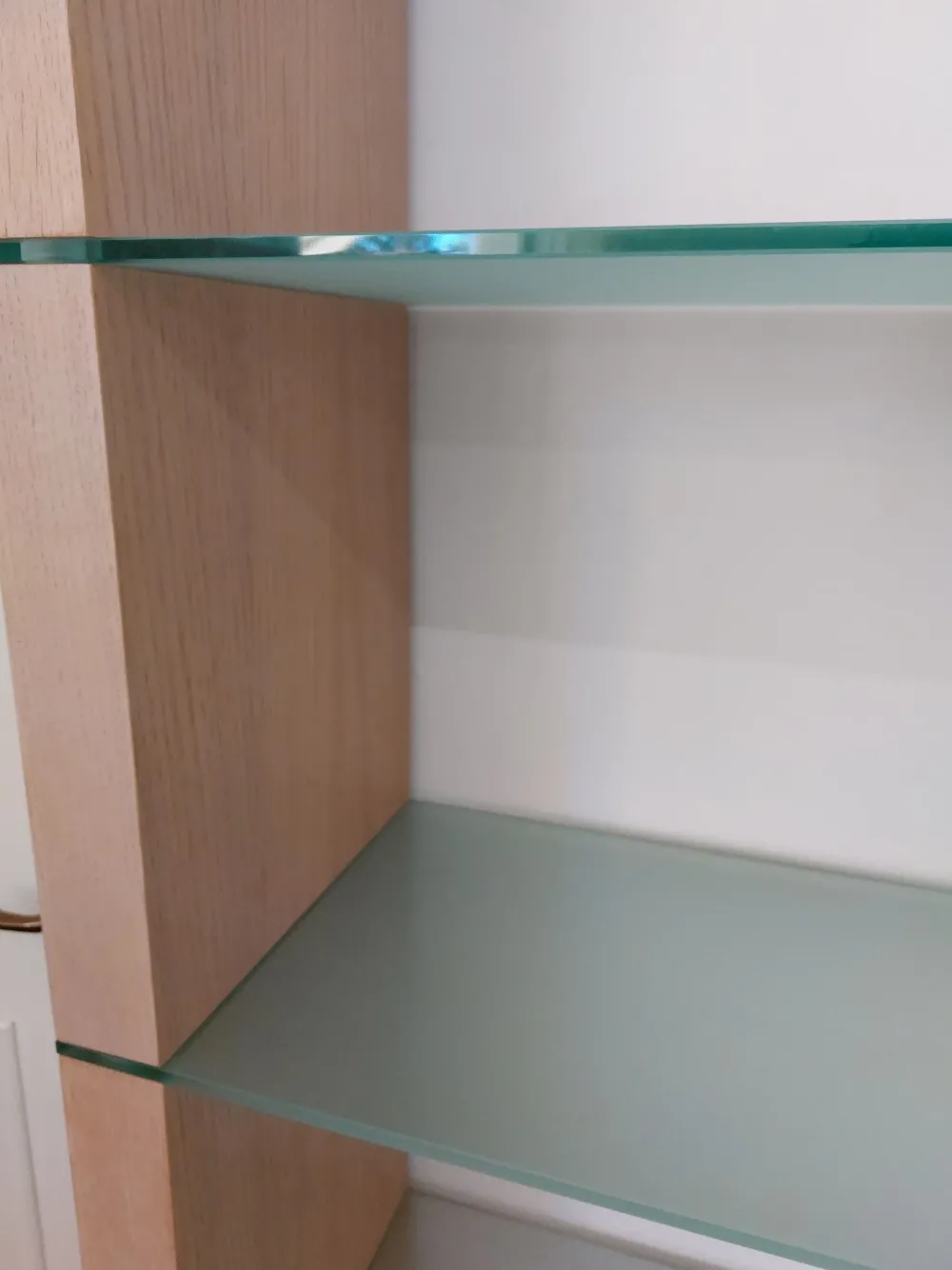 - I mobili e oggetti accessori in vetro come questa libreria modello Air sanno valorizzare spazi di ogni genere.