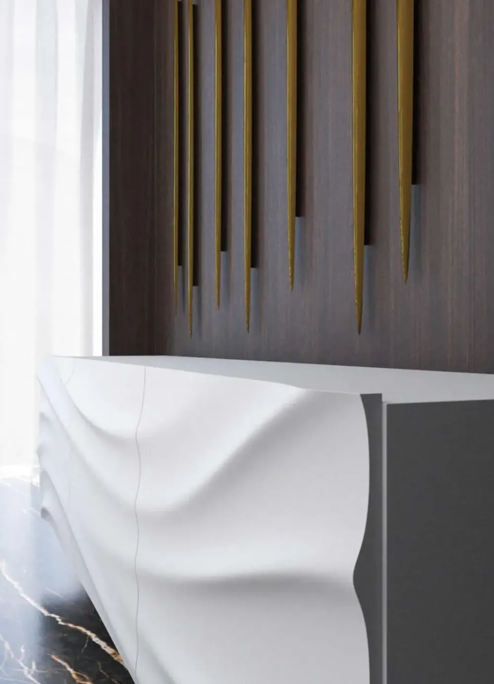 La madia modello Fluida qui visibile saprà arricchire il tuo soggiorno sottolineando le doti estetiche dell’ambiente: questo mobile in laccato opaco ti permetterà di avere sempre a disposizione un piano d’appoggio plurifunzionale, esaltando al contempo lo stile moderno del soggiorno.