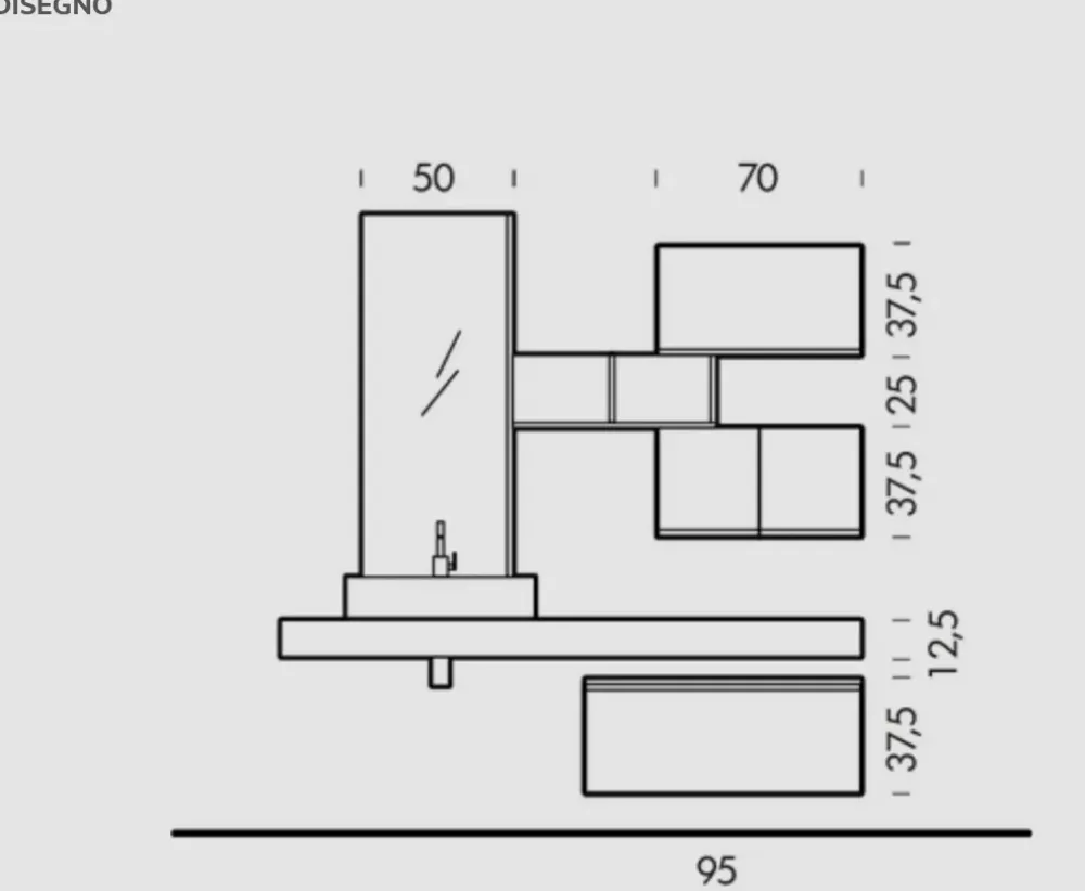 Dimensioni composizione: L200, P51/20,8cm.