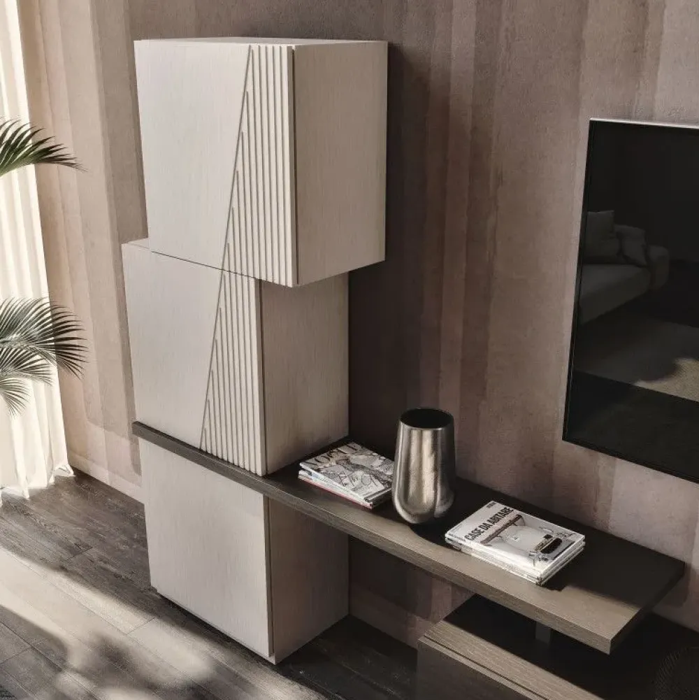 Il living si compone di diversi mobili ed elementi accessori capaci di completare lo spazio usufruendo al meglio di ogni angolo ; tra questi non mancherà una parete attrezzata come il modello Nova comp 14 di Mobilificio Bellutti mostrato in foto, pensata per dare vita a un soggiorno pratico e operativo.