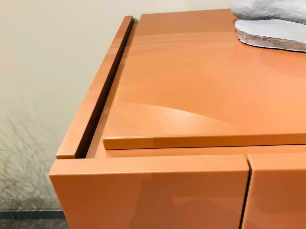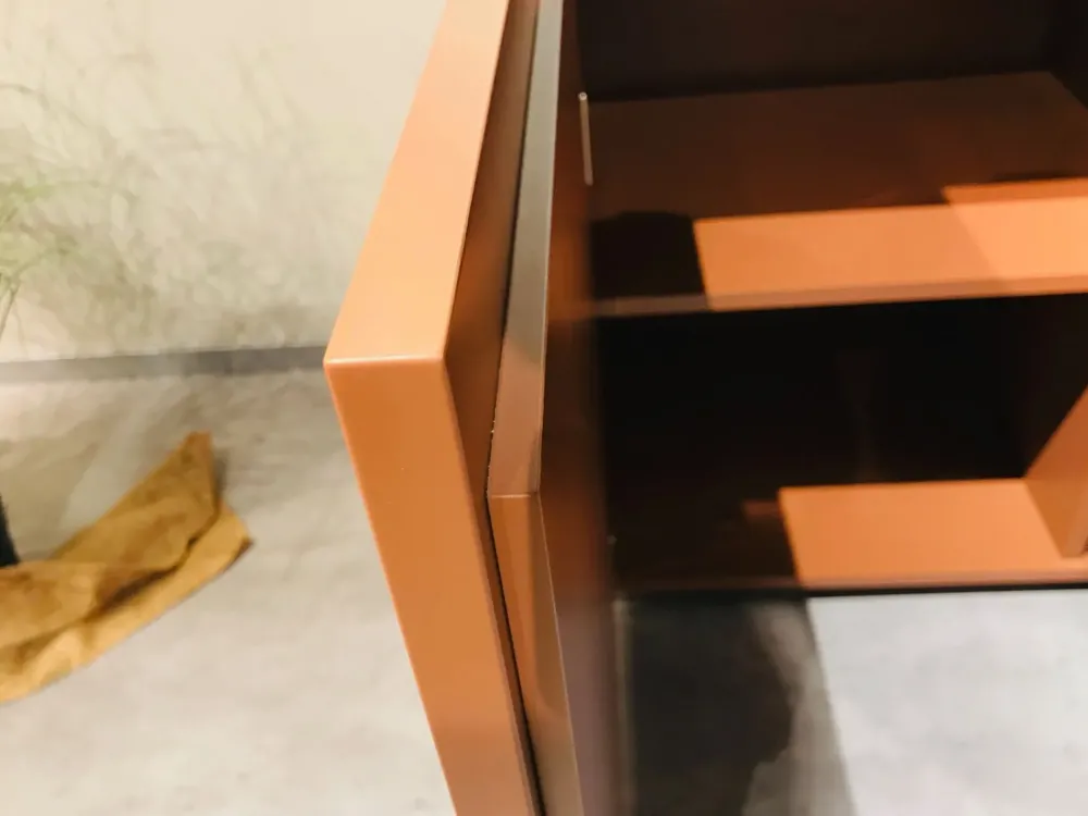 Finitura laccato opaco colre terracotta.
