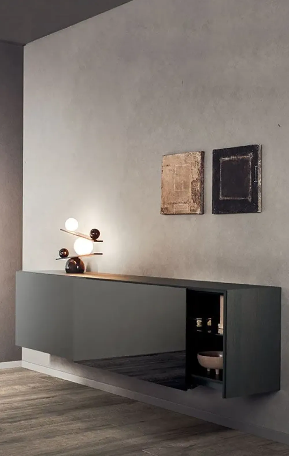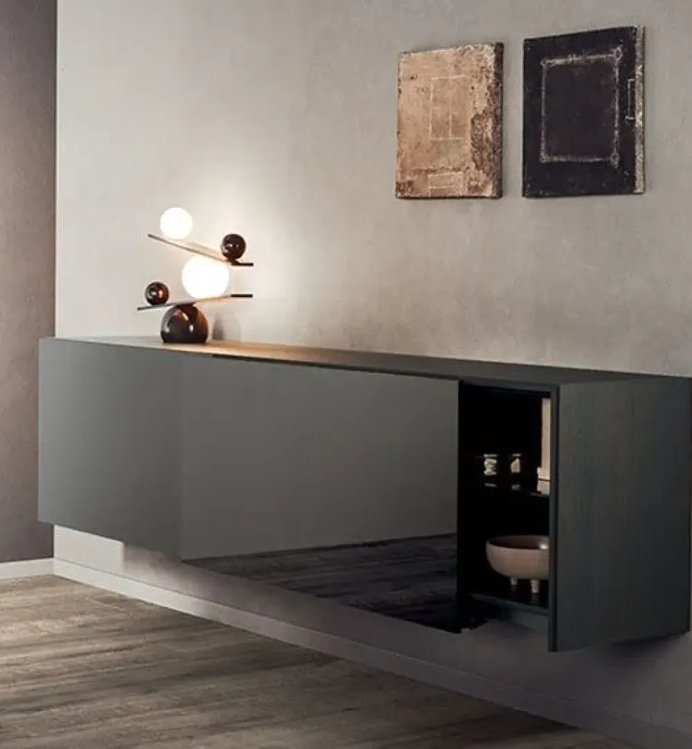 Arreda il living rendendolo dinamico e operativo: se desideri un mobile sospeso, la madia nell’immagine fa al caso tuo.