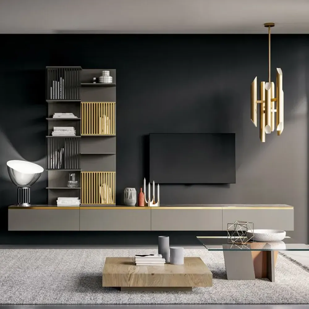 Forme decise e uno stile unico caratterizzano questa composizione per il soggiorno, rendendola ideale per valorizzare un luogo in stile design.