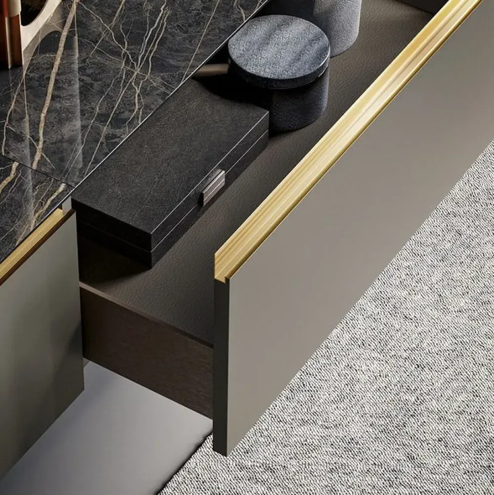 Tra differenti mobili e oggetti accessori senza maniglia, questa proposta saprà valorizzare il soggiorno valorizzando ogni angolo.
