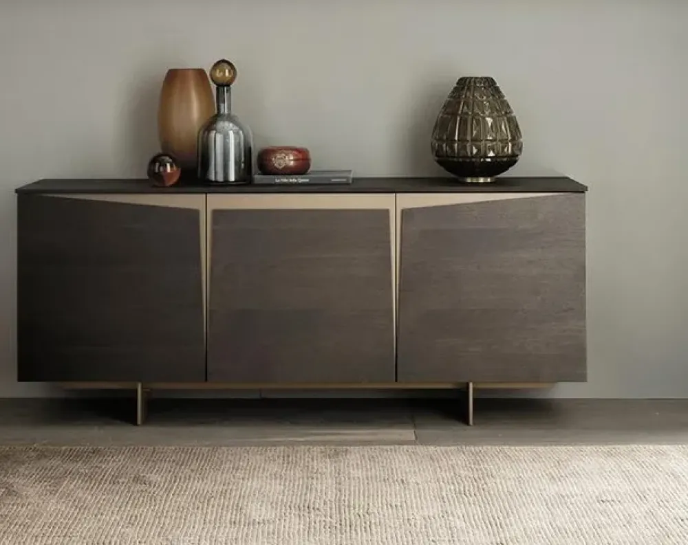 La madia in foto è nella finitura Noce Dark e laccato bronzo cm 180 x 75,4 prof. 45