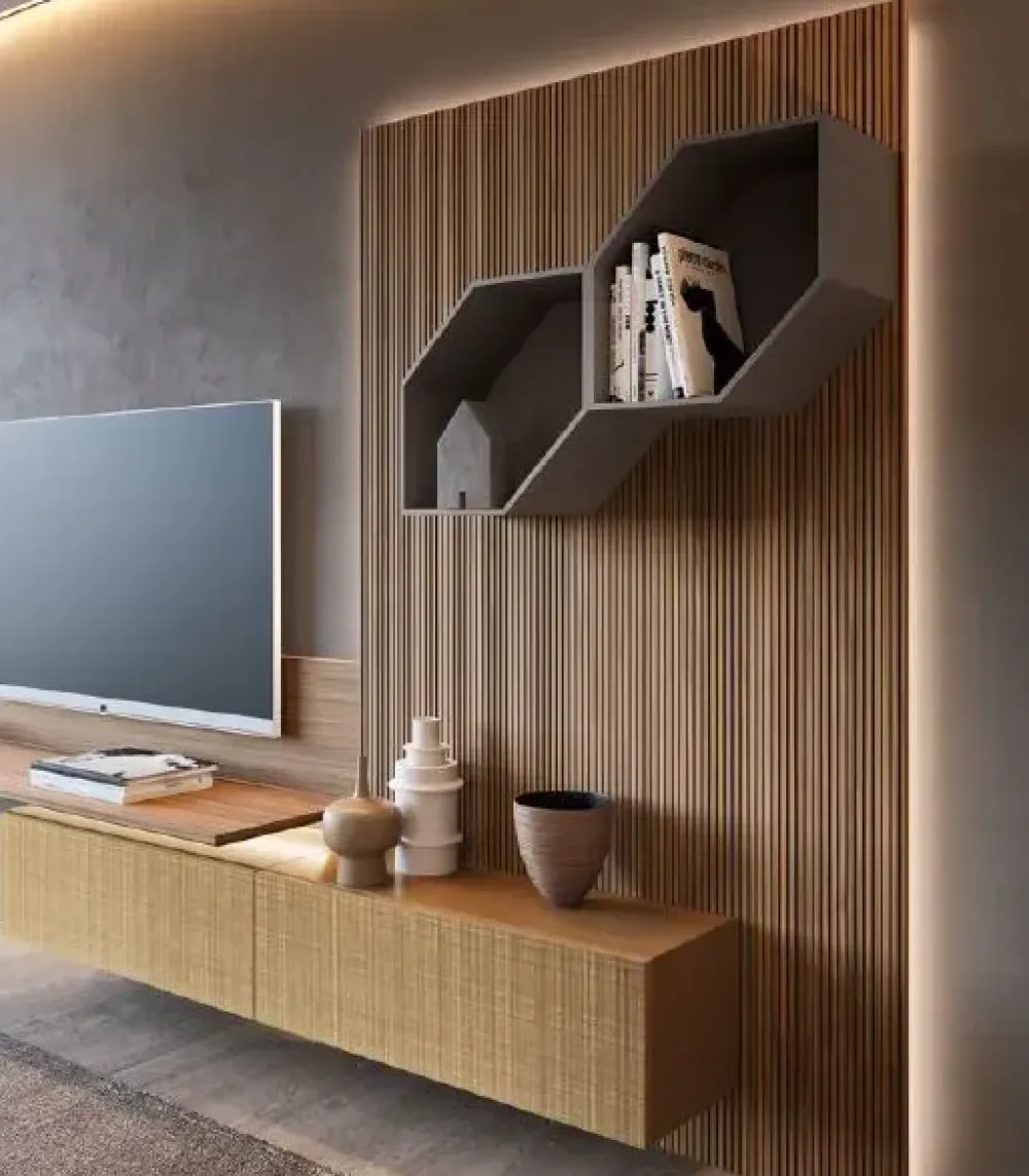 LIGHT E BOISERIE WALL SYSTEM MULTIRIGA NOCE