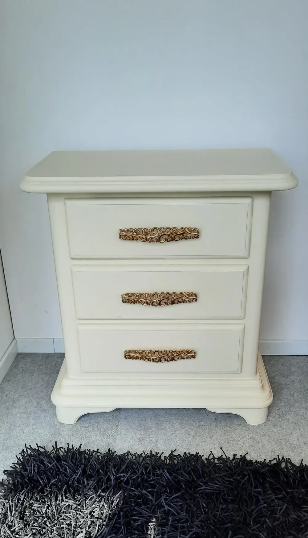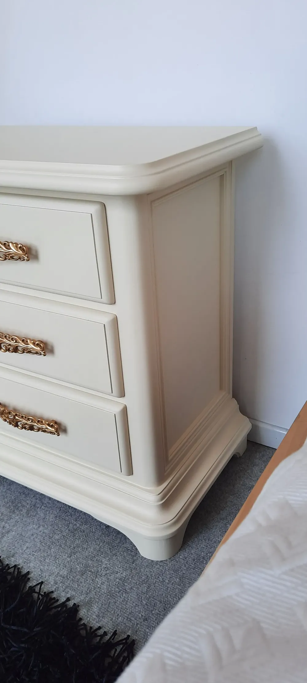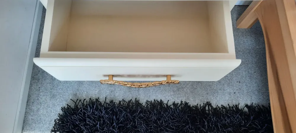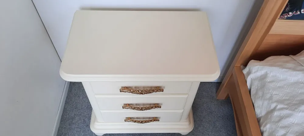 Comodini artigianali , completamente in legno e laccati con processo manuale , DISPONIBILI IN QUANTITA’ ,laccato avorio chiaro opaco con maniglie color oro satinato, personalizzabili in tutti i colori.