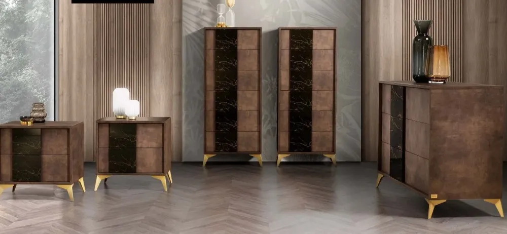 - Tra i materiali durevoli che la marca ha scelto per la sua serie di mobili e complementi per la camera da letto, non può mancare per certo il legno con cui questo modello Grazia effetto marmo è stato costruito, materiale adeguato per trovare risposte alle richieste pratiche ed estetiche individuali; design unico, resistenza nel tempo e resistenza strutturale sono garantiti in questa proposta di alta qualità, in quanto è realizzata secondo una certa coerenza di stile.