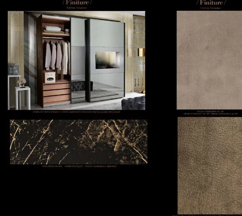 – ARMADIO SCORREVOLE CON ANTE A SPECCHIO E FASCIA CENTRALE IN EFFETTO MARMO