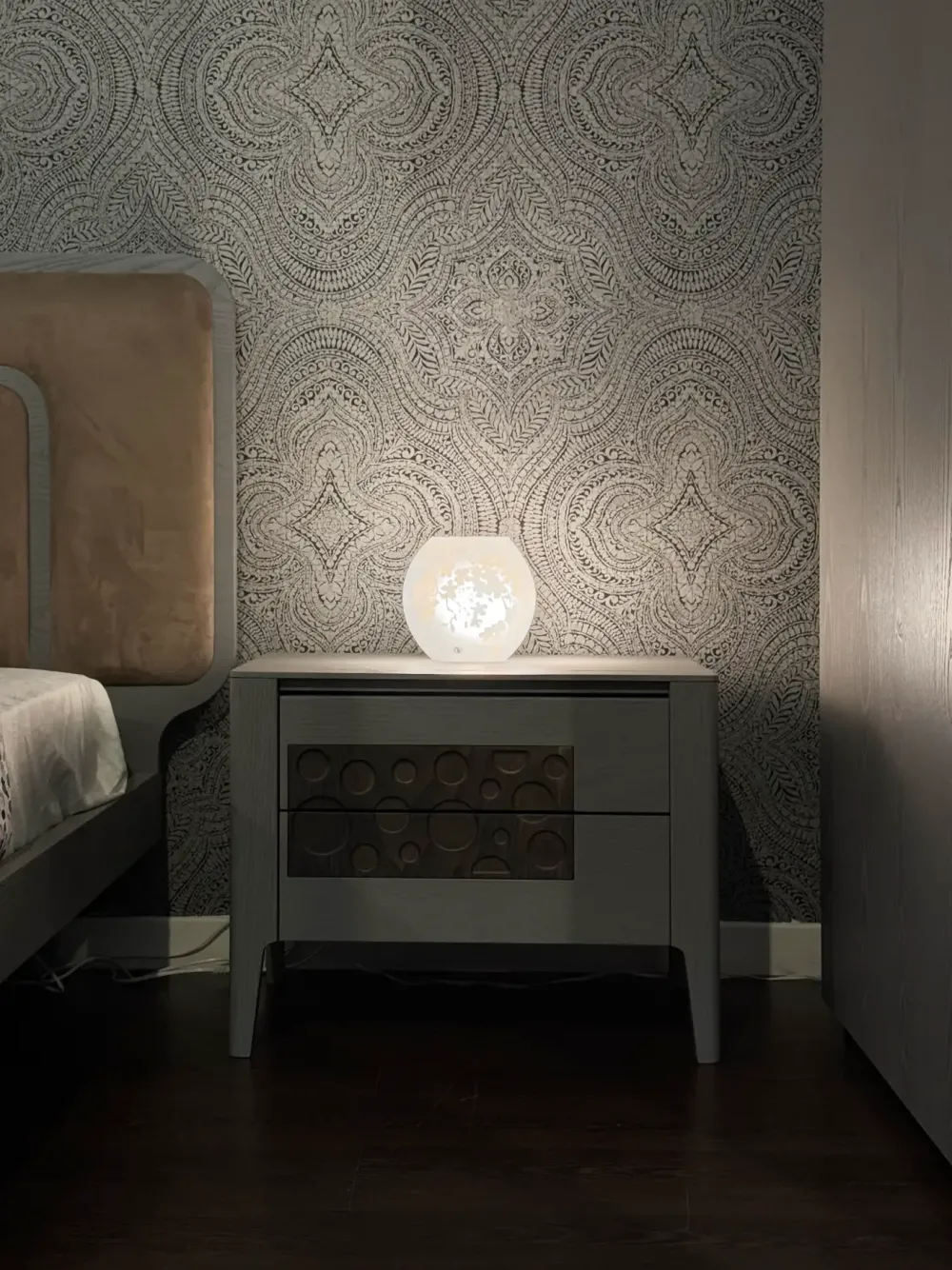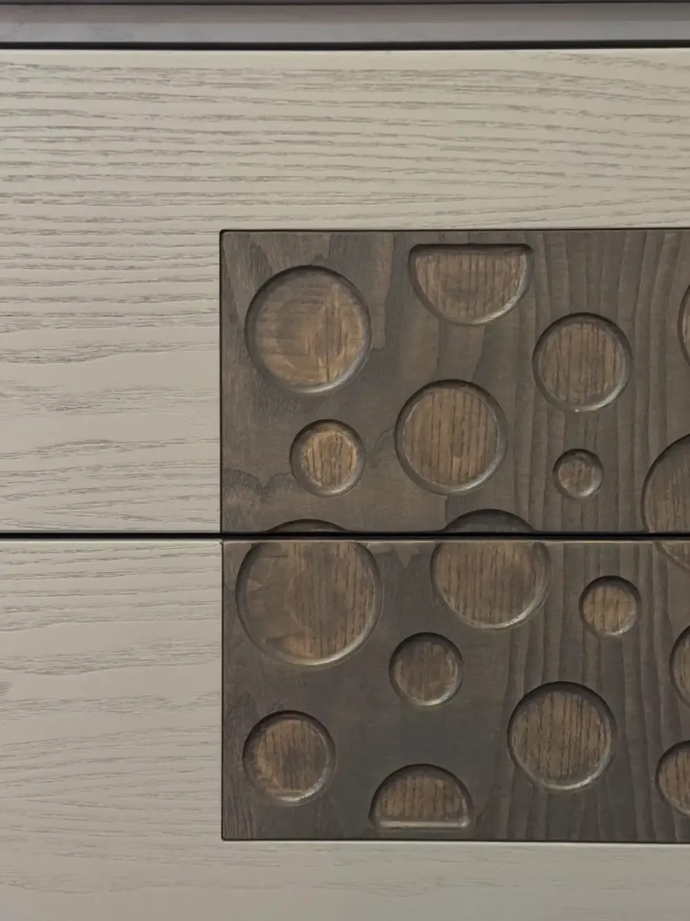 MOON, geometrie secondo natura. Armonia di forme e timbri cromatici, rispetto per l’ambiente e le persone, sensibilità per la bellezza e il buon vivere. I decori incavati nel legno massello della collezione Moon sono dettagli di grande pregio che donano carattere ai mobili.