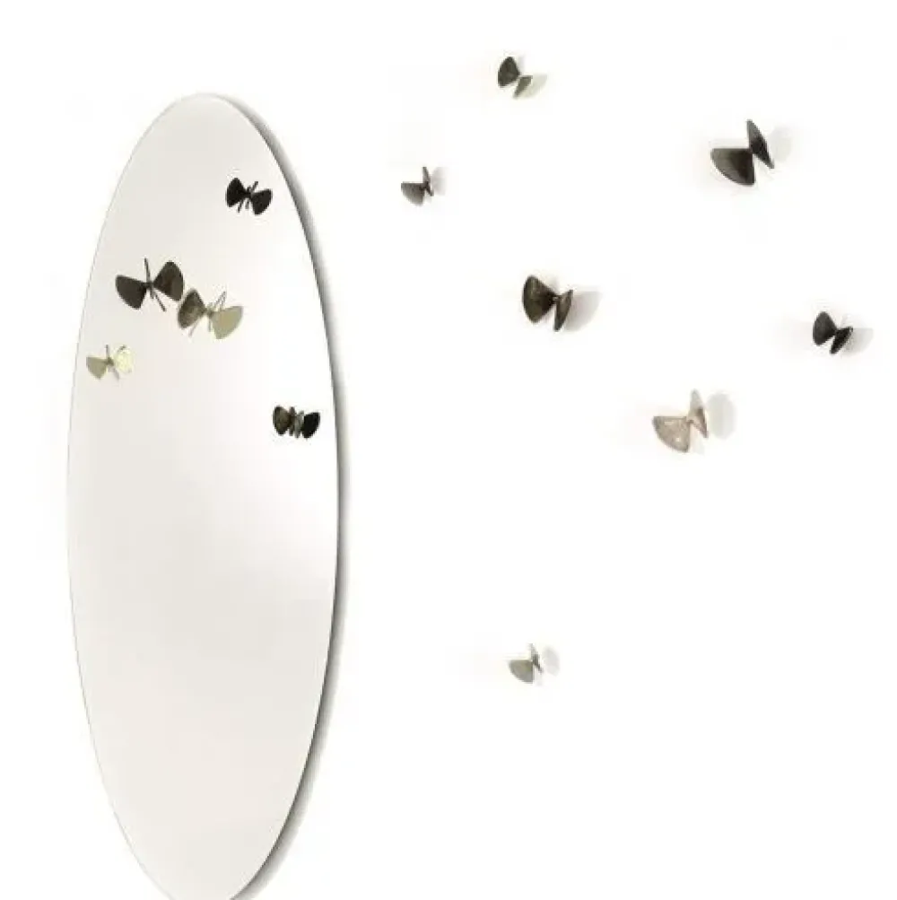 Lo specchio ovale Bice è un set di 5 farfalle appendiabiti a muro in fusione di ottone.