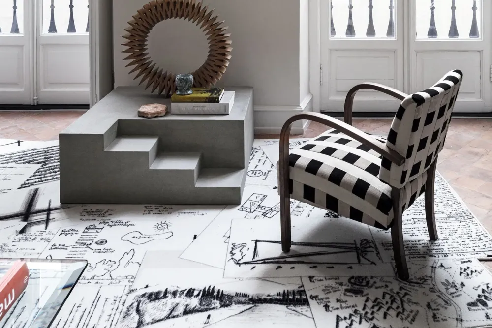 - Posizionare dei tappeti tra i mobili di casa, vuole dire ricreare originali composizioni di forme e colori, arricchire spazi troppo vuoti o dare vita a un contrasto moderno con i vari mobili. Per riuscire a farlo, ad ogni modo, è essenziale connotare una peculiare linea stilistica: i tappeti, di fatto, vanno abbinati ai mobili, alle pavimentazioni, agli altri accessori e pure al tipo di ambiente che arricchiscono. Prima di sceglierne uno, dunque, ti tornerà utile appurare a quale idea di stile riferirti: se vuoi personalizzare un locale di spiccato gusto moderno, allora il tappeto Appunti visibile in foto sarà il miglior acquisto per te.