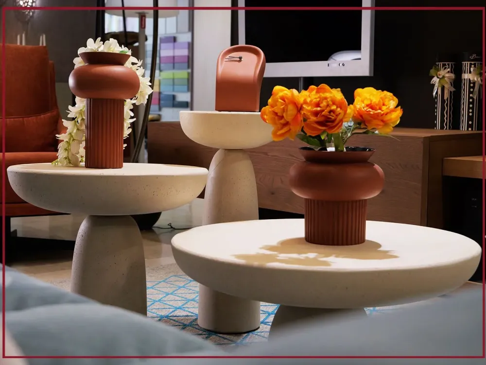 Olo è una famiglia di tavolini monolitici in cemento finitura a cera. Disponibili nei colori avorio e antracite. Sono sculture moderne che abitano la zona living. Essenziali nelle sagome con la massima forza espressiva.