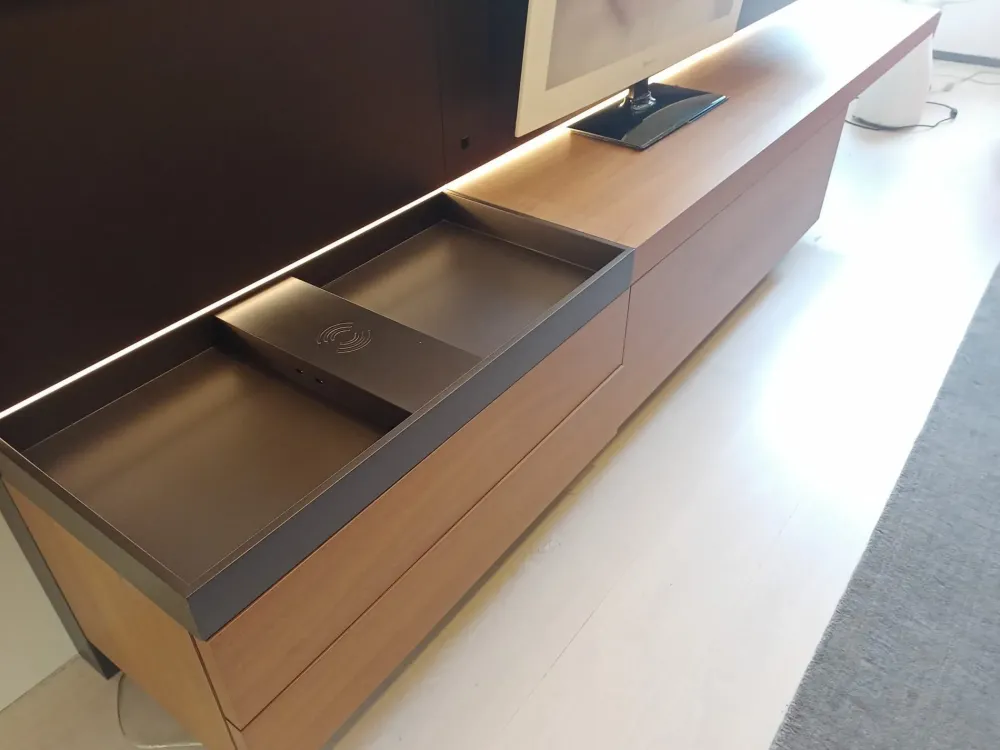 Parete sospesa molteni modello grid con carica cellulare wireless e led in legno e laccato