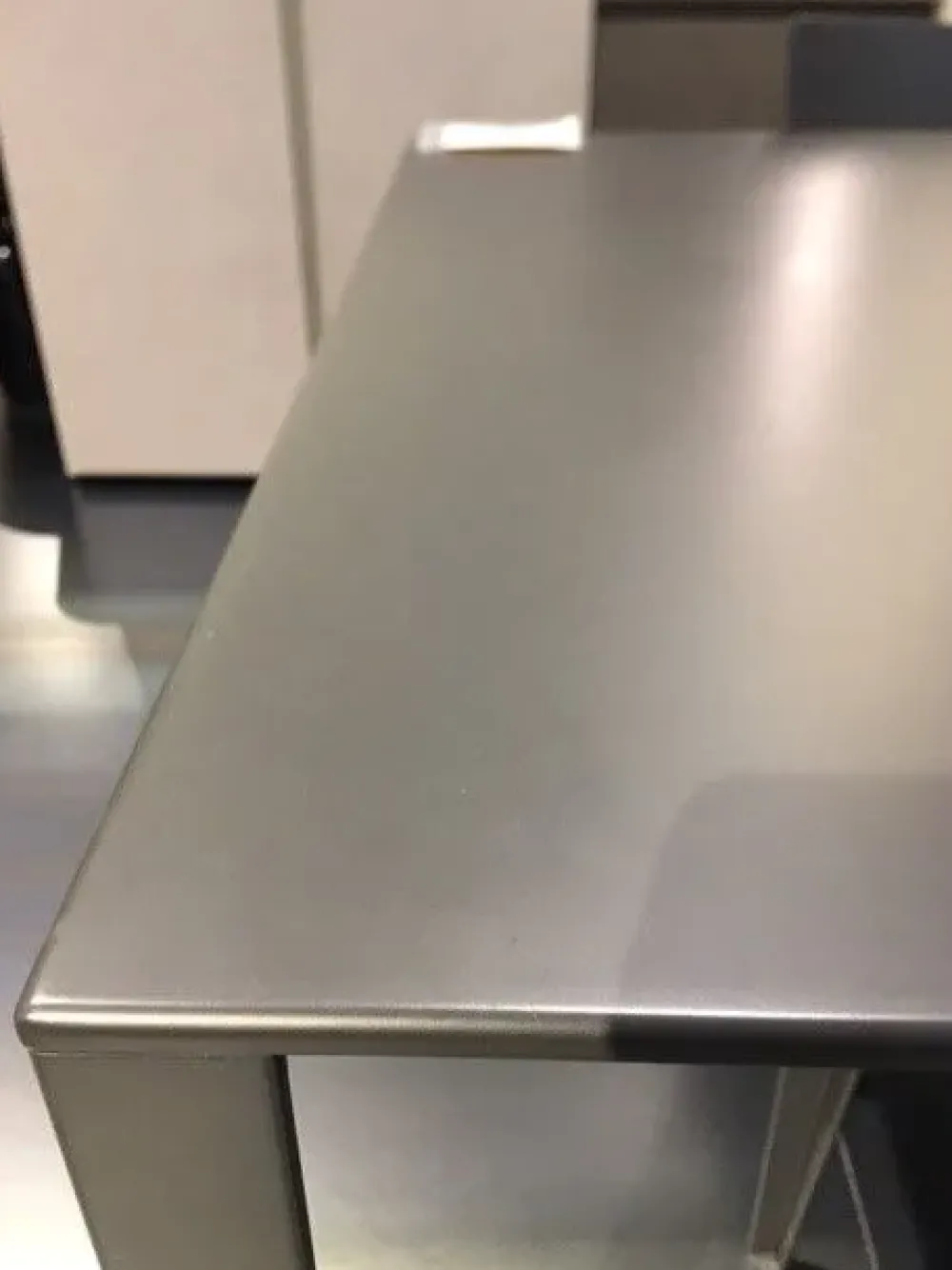 Piano: Lamiera d’allumini scatolata rinforzata con spicchi in lamiera piegata e nervata, assiemati tra loro con incollaggio epossidico verniciato laccato opaco antracite