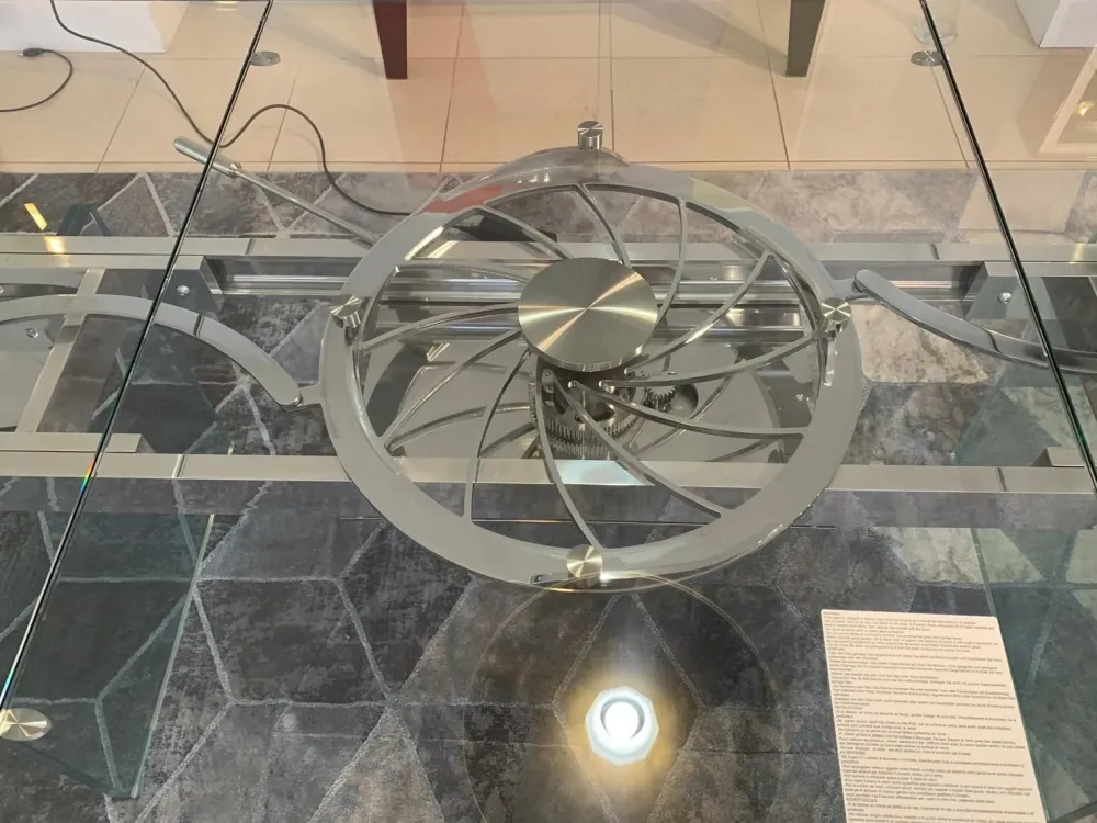 Top in cristallo naturale, gambe in cristallo stratificato, meccanismo cromo (con motore)