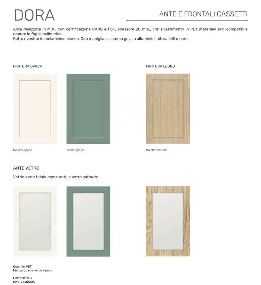 - Finiture e colori a scelta dal campionario aziendale