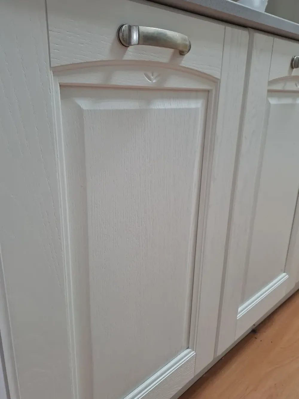 - Bea è una cucina classica in legno bianco, dalla disposizione lineare, che migliora la vita in cucina grazie ai suoi dispositivi innovativi e resistenti.