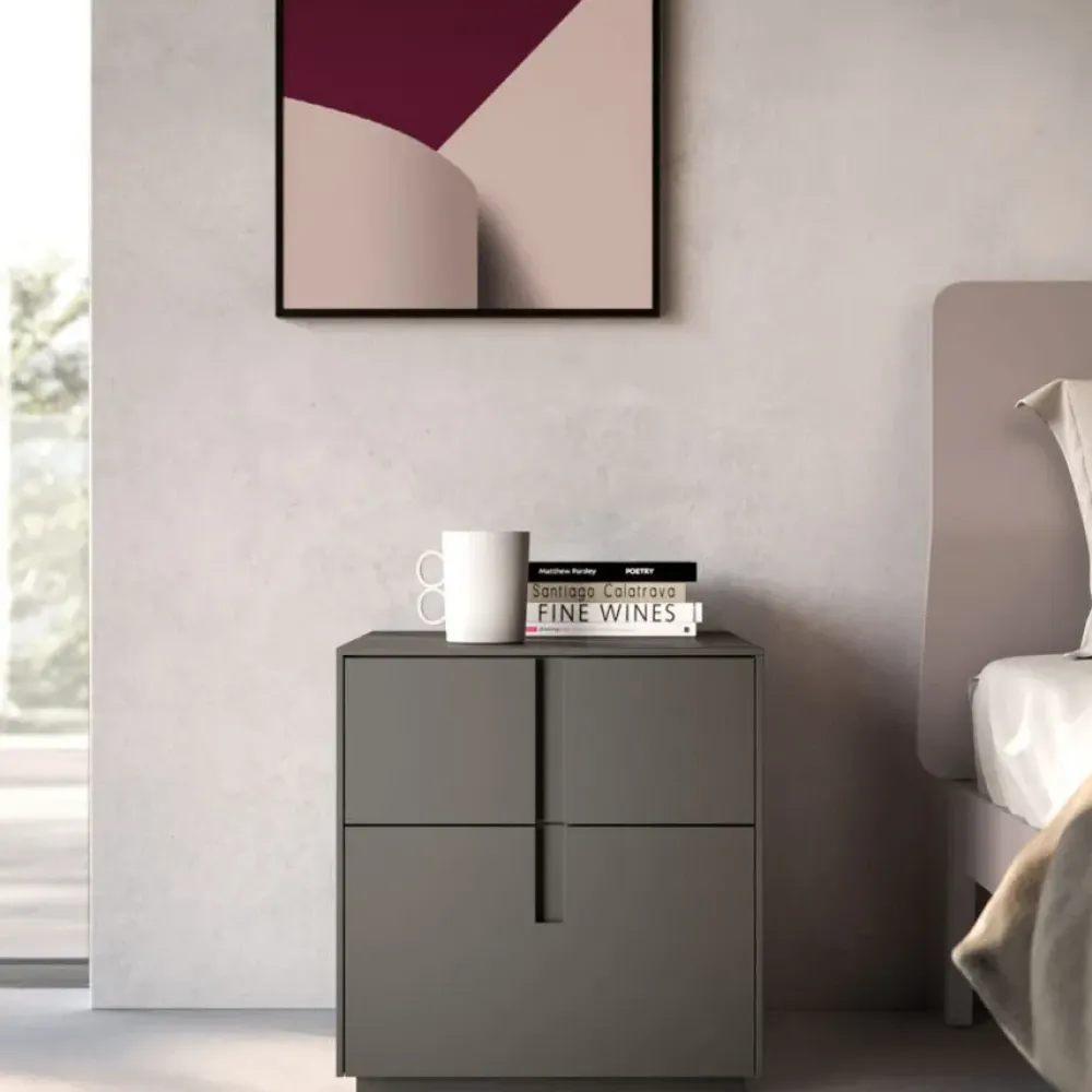 Elementi: Comodini e settimanale Ilo in laccato opaco Antracite.