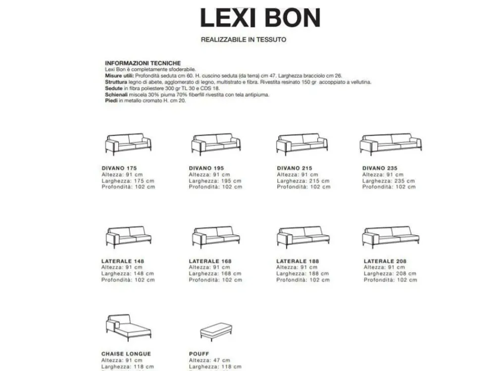 - Questo modello Lexi bon Excò è rivestito totalmente in Tessuto sfoderabile, materiale adatto per conservare nel tempo le doti di praticità ed estetica.