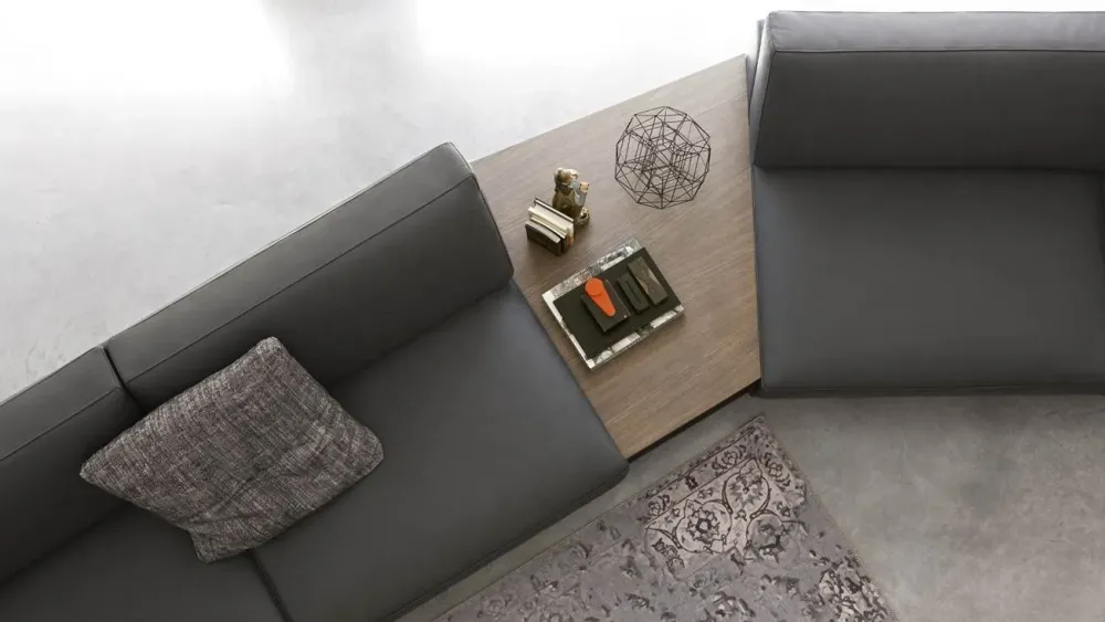 La sua struttura è costruita in legno massello di abete, per garantire stabilità, durata e sicurezza nel tempo. A completare il design, elementi di appoggio in legno sagomato, disponibili in diverse finiture, si integrano armoniosamente tra le sedute. Tavolini abbinati possono essere inseriti direttamente nella composizione, trasformando il divano in un vero e proprio centro funzionale del soggiorno ideale per colazioni, aperitivi o momenti di relax con la famiglia.