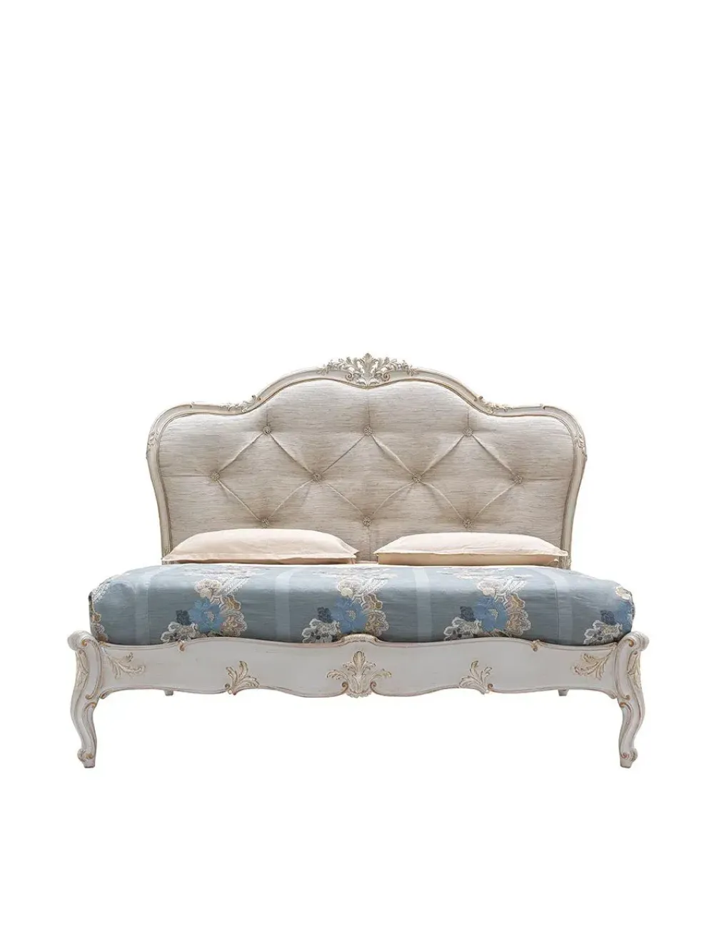 Grifoni Silvano art. 2474 Letto con imbottitura trapuntata cat. 1 finitura grigio perla e argento cat. 1 L. 198x prof 218 x h. 157 completo di rete a doghe L 170×200