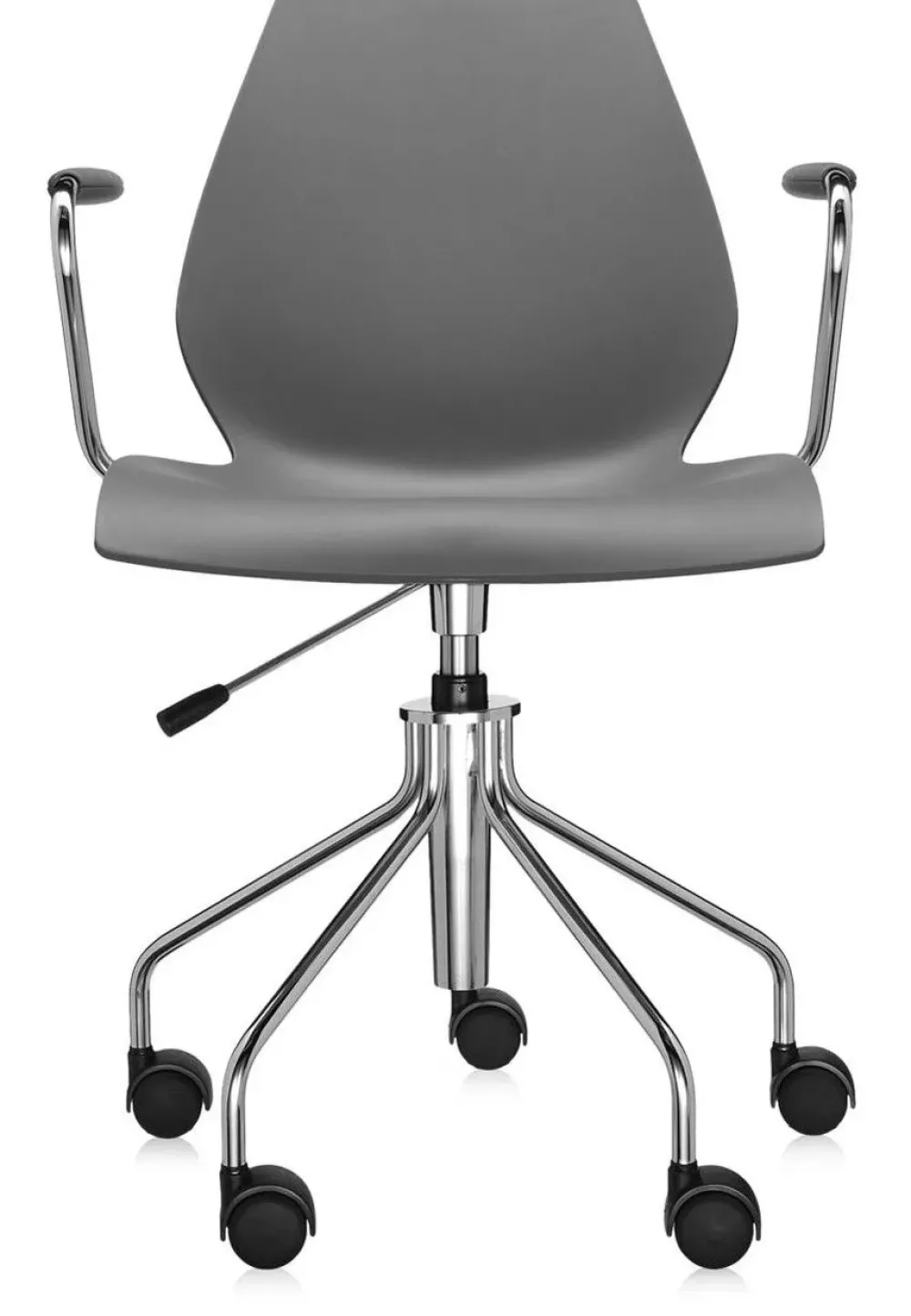 Sedia/Poltroncina su ruote con struttura in acciaio cromato, scocca e braccioli in polipropilene colorato in massa