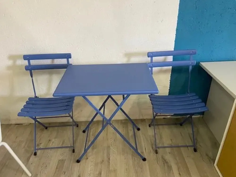 set da giardino disponibile in vari colori. comprende tavolo pieghevole 70 x 50 e due sedie