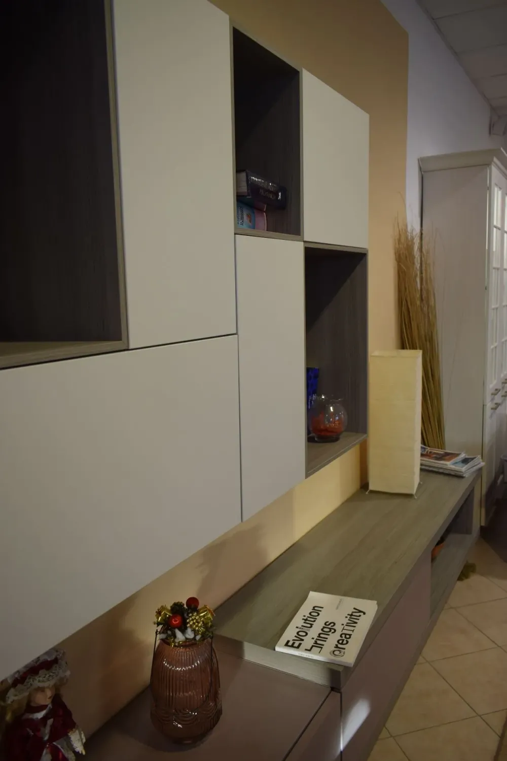 Composizione Orme day 104, completa di tutti i mobili ed elementi accessori di cui hai bisogno per il tuo living: trasporto incluso nazionale (no isole) per quest’offerta.