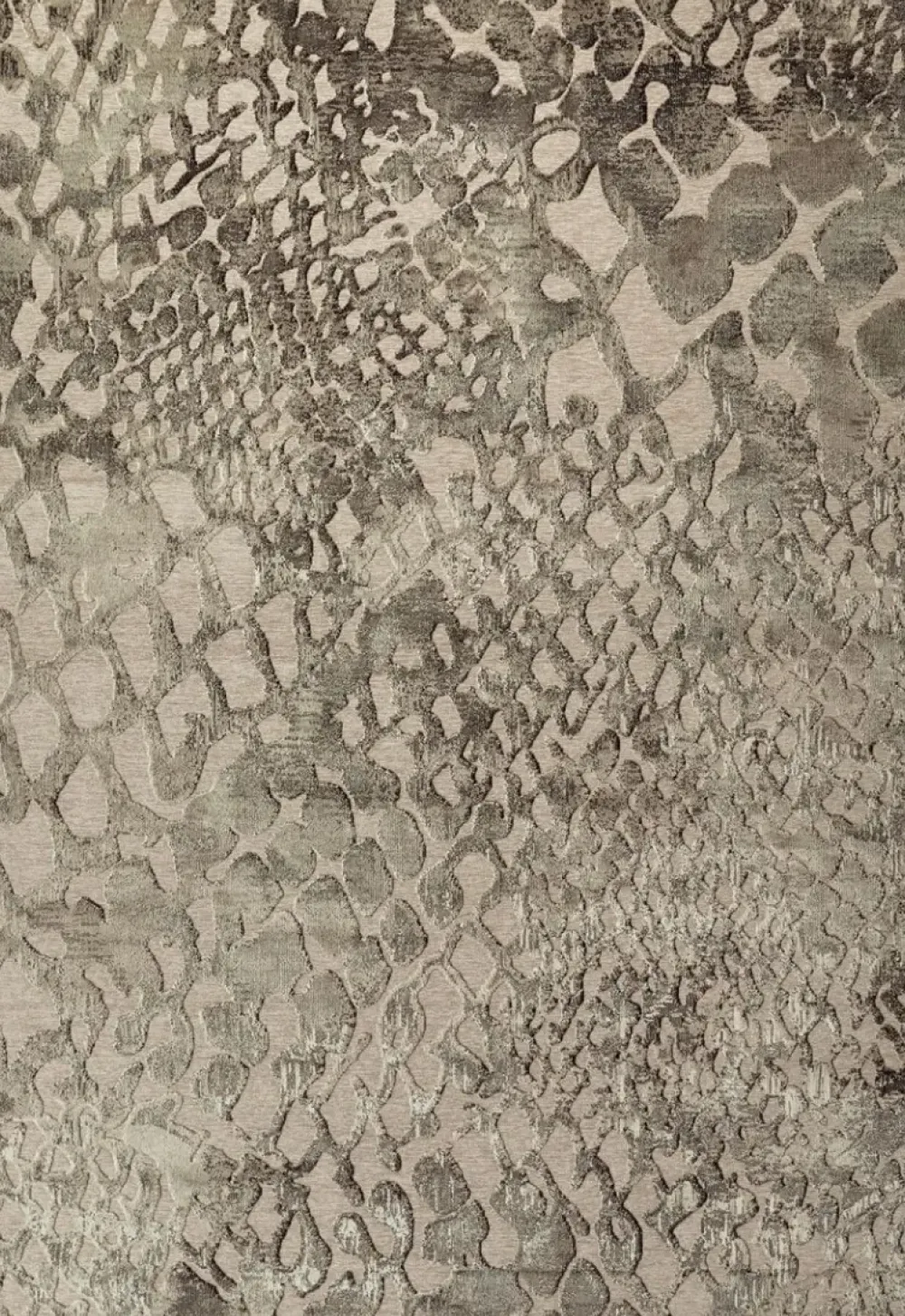 Tappeto rettangolare 160×230 cm (colore ecrù / tortora) in viscosa 80% e fibra acrilica 20%.