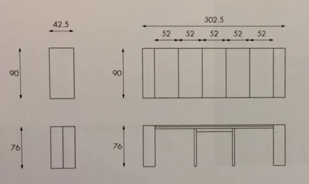 estendibile a settori ( aggiungendo il numero di allunghe desiderato 9 fino a cm. 302,5 .