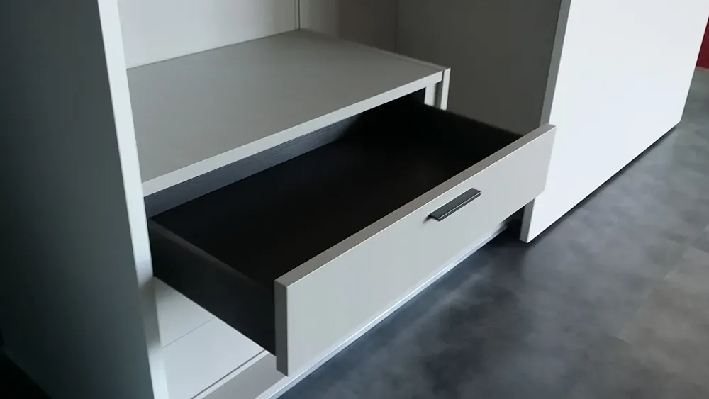 Camera con ferramenta di qualità, guide cassetti a scomparsa con rientro ammortizzato garantite 60.000 aperture-chiusure, meccanismi scorrevoli a chiusura rallentata garantiti 100.000 aperture-chiusure