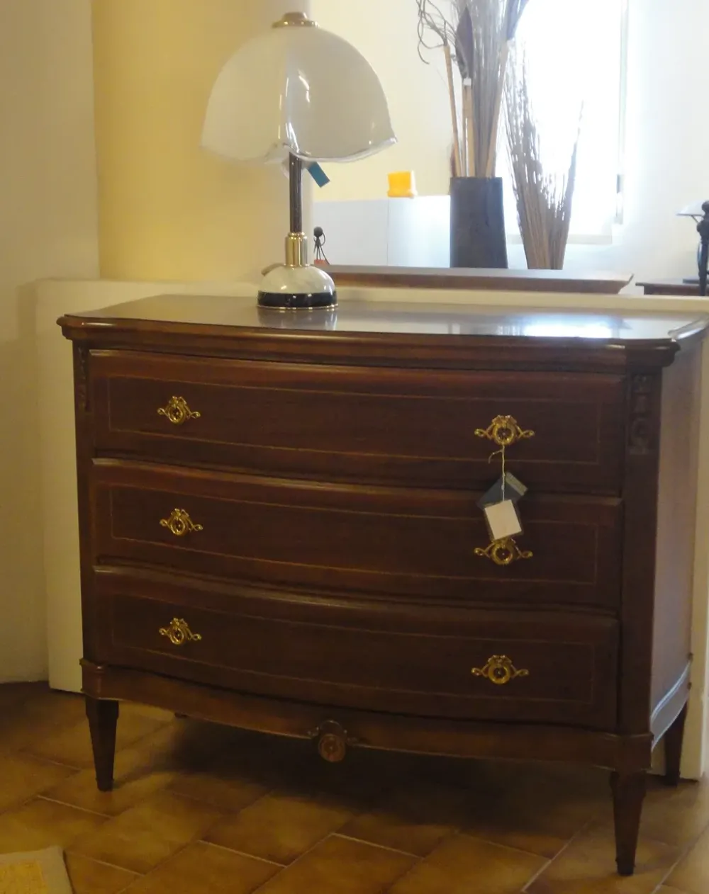 Il gruppo letto, dallo stile classico, è composto da 2 comodini , como’ e specchiera.