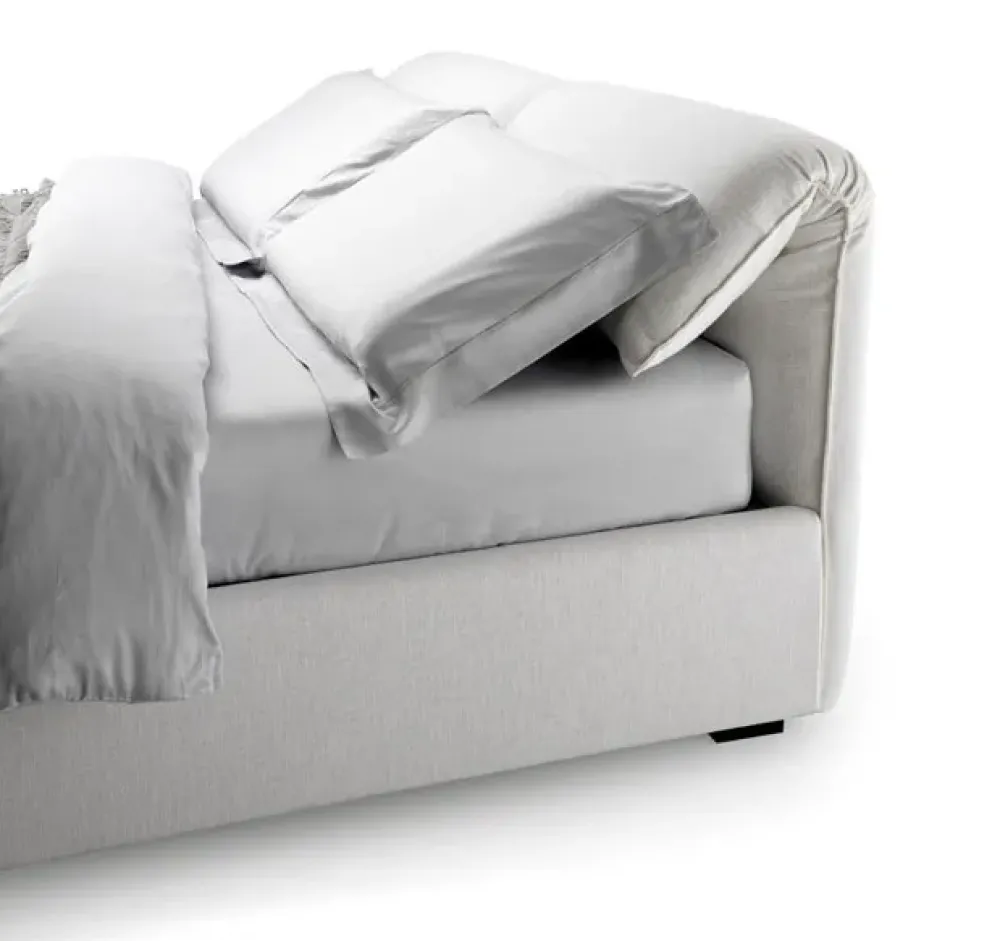 Sharp è un letto con testiera reclinabile che permette un comodo riposo. La struttura del giroletto è in legno stagionato e agglomerato in classe E1, completamente imbottito. La testiera ha un meccanismo reclinabile in acciaio ed è completamente imbottita. L’imbottitura è in poliuretano espanso indeformabile rivestita in ovatta di poliestere e velluto accoppiato per un comfort ottimale ed una lunga durata nel tempo.