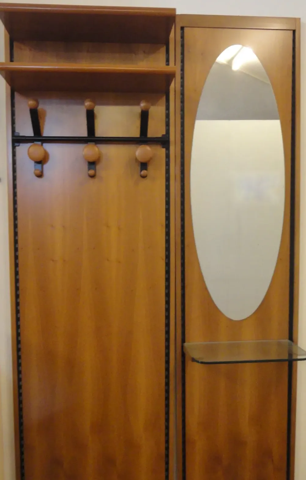 Il mobile di ingresso , è in effetto legno noce completo di ripiani e appendiabiti.