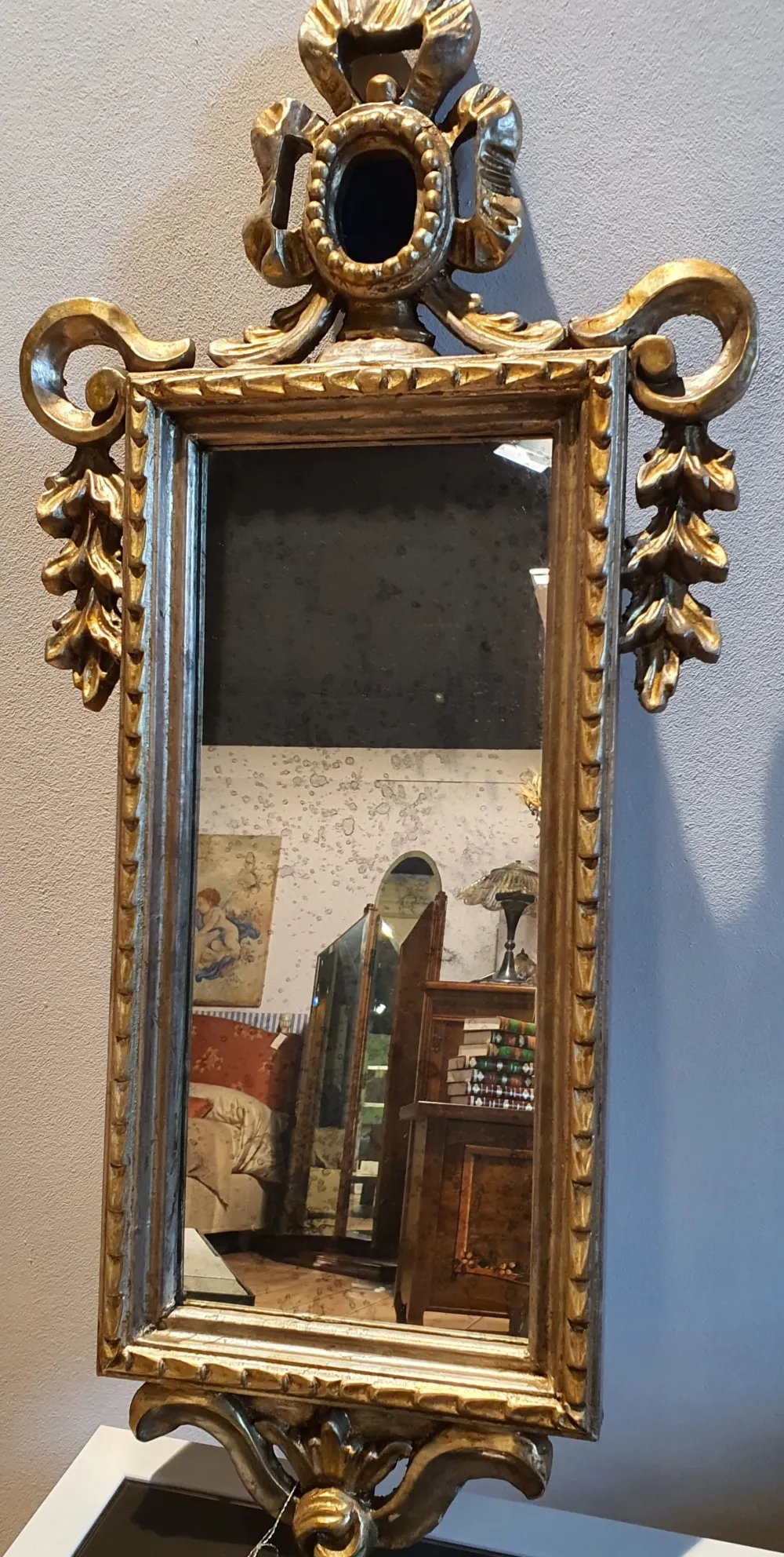 - Se desideri creare particolari atmosfere in case con uno specchio classico, il modello Foglia argento anticato p visibile in foto fa al caso tuo.