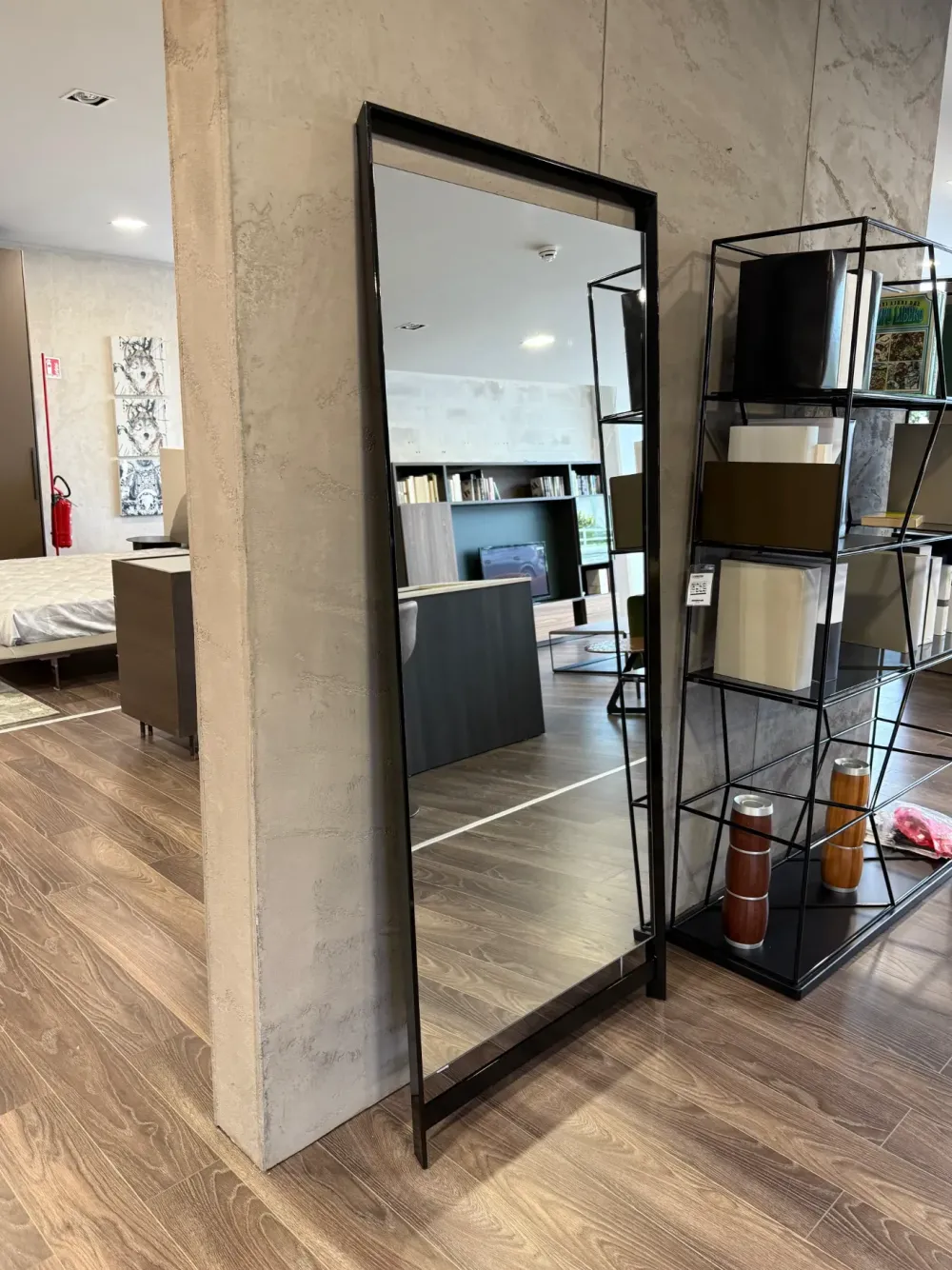Lo specchio King, disegnato da Luca Roccadadria per Bontempi, rappresenta un complemento d arredo moderno ed elegante. Ha una struttura in acciaio laccato disponibile nella finitura nero profondo. È progettato come specchio da terra ma con un fissaggio superiore a parete, che garantisce stabilità e sicurezza. Lo specchio è pensato per dare profondità agli ambienti, riflettendo la luce e ampliando visivamente lo spazio. Grazie all offerta outlet, è possibile acquistare un elemento sofisticato e funzionale di design italiano con un ottimo risparmio.