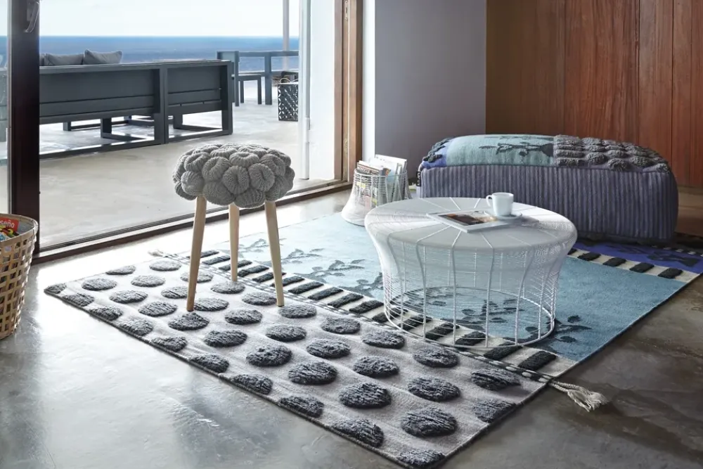 - Il tappeto qui visibile è tramato e annodato in lana, uno dei materiali durevoli che si prestano a comporre ordito, trama e nodi dei tappeti con un certo stile e garantendo, al contempo, resistenza negli anni e grande sofficità. Le proposte d’arredo del marchio sono sempre di qualità eccellente, studiate in ogni particolare sia per quanto concerne l’aspetto estetico, sia per funzionalità ed ergonomia.