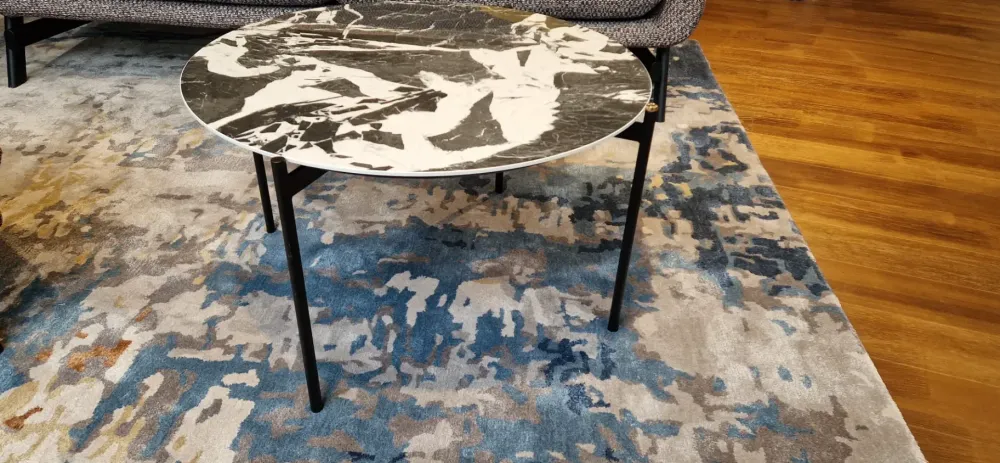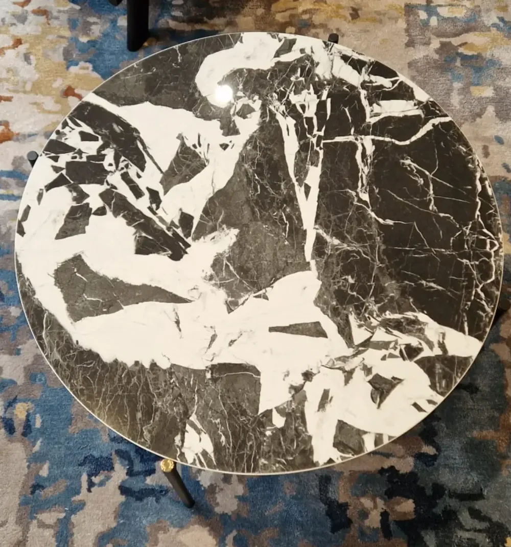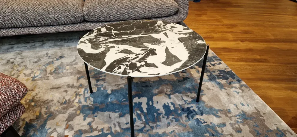 Il Tavolino Caillou di cm 75-79 diam x 45H è un esempio sublime di come le sovrapposizioni di forme, geometrie e colori possano trasformare un semplice oggetto in un pezzo darte funzionale. Questo tavolino non è solo un complemento darredo, ma un esercizio di stile che gioca con riflessi di vetro e metallo prezioso, offrendo unesperienza visiva unica e sofisticata. Le linee pulite e rigorose del design sono lessenza della sua bellezza, creando un equilibrio perfetto tra eleganza e modernità. Versione con piano in ceramica Fragment, struttura nera.