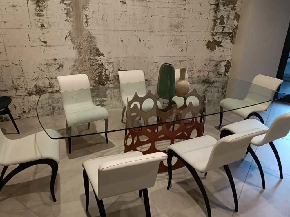 Jean è un tavolo da pranzo moderno progettato dal designer Carlo Ballabio. La base scultorea in metallo, disponibile in colore Bronzoro è senza dubbio il suo tratto distintivo e lo rende adatto ai diversi stili di arredamento, dal più moderno al più tradizionale. Inoltre, la sua posizione centrale rispetto al piano conferisce un maggiore livello di flessibilità, lasciando completa libertà nella disposizione delle sedie da pranzo intorno al tavolo.