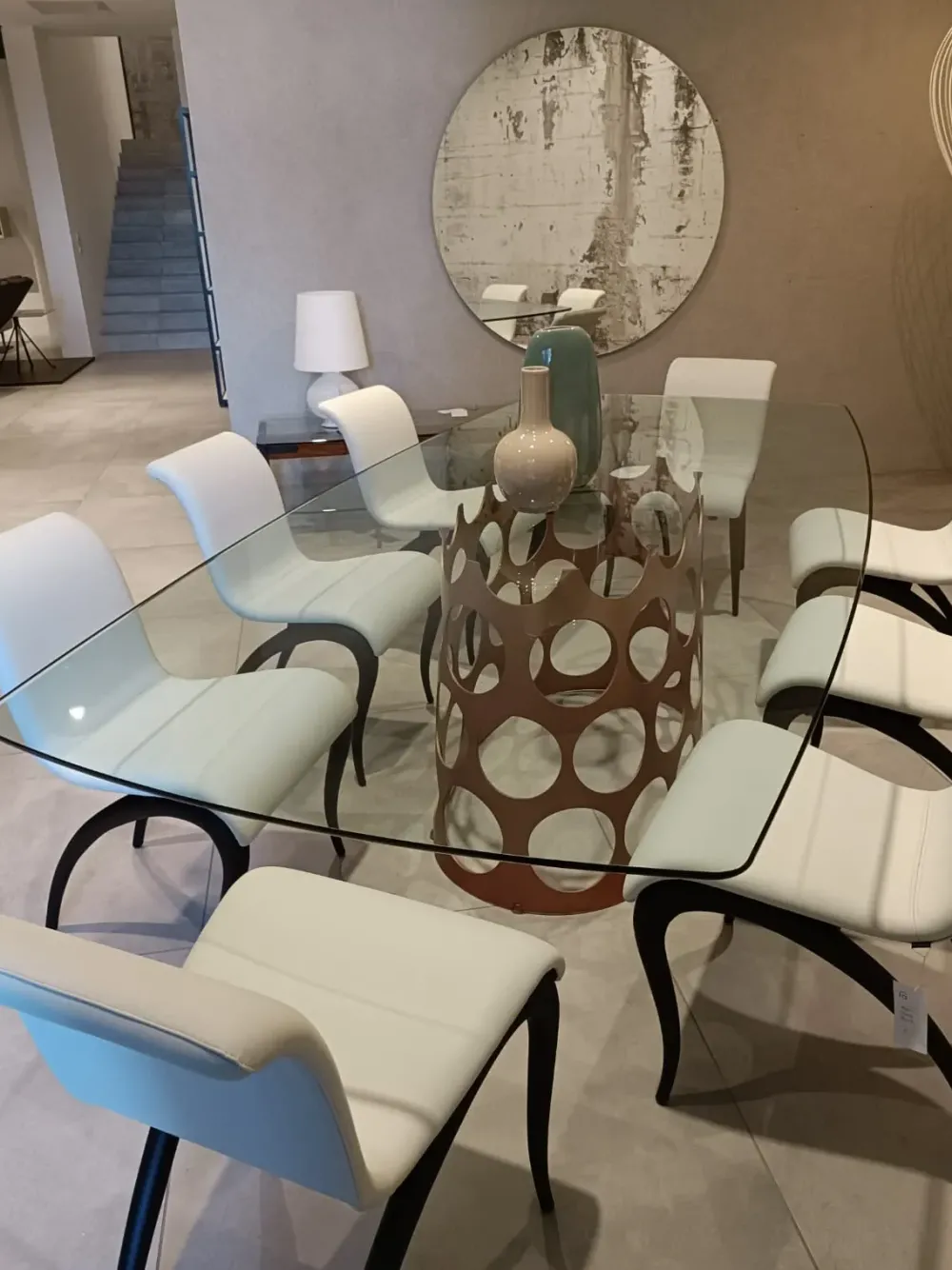 Il piano in cristallo a forma di botte è studiato per accogliere comodamente fino a dieci persone.