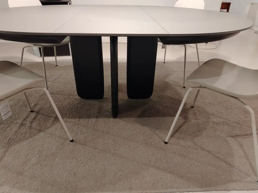Tavolo Pala allungabile diametro 140 chiuso cm 140×190 allungato struttura e gambe verniciate nero, piano in Fenix grigio Londra