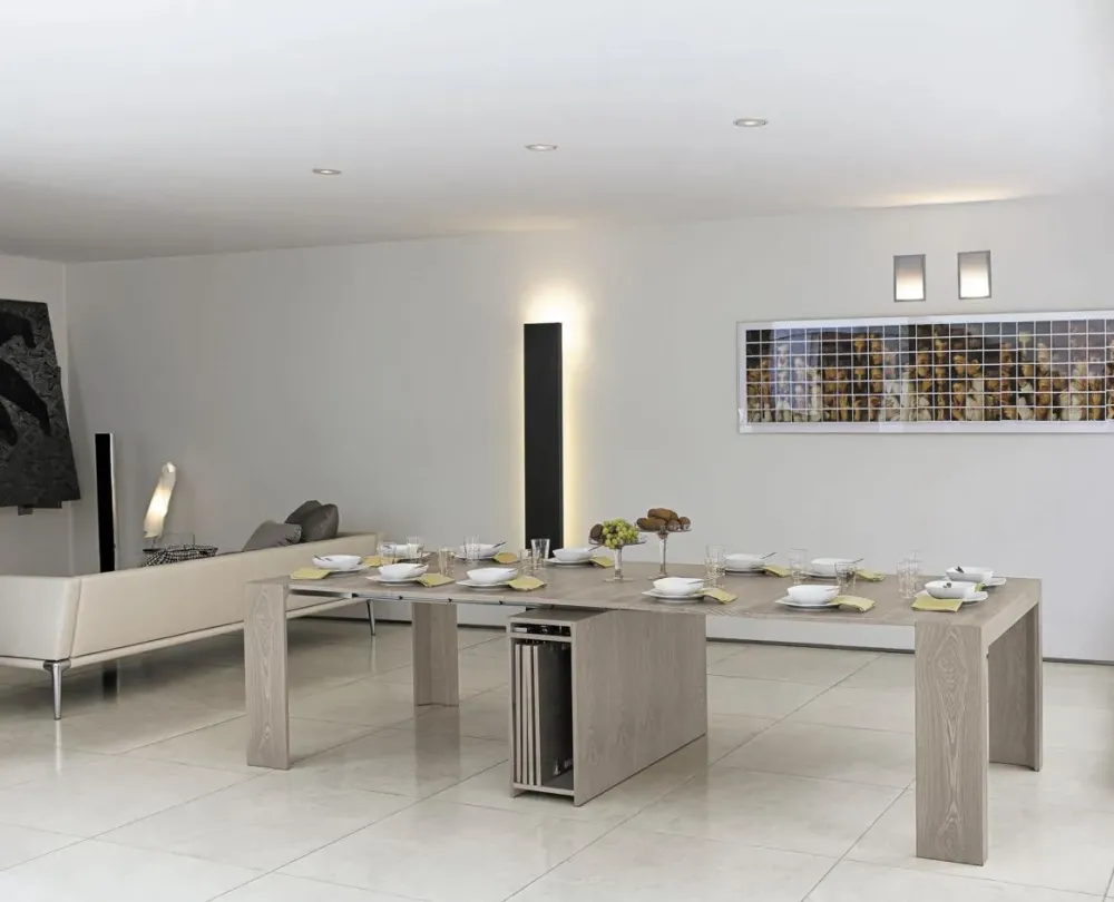 - I locali interni di ogni genere devono essere organizzati con una certa logica, in modo che gli arredi organizzino al meglio lo spazio senza essere di intralcio: quindi la scelta diviene spesso complessa e si rischia di dover rinunciare all’aspetto estetico piuttosto che pratico; noi sappiamo bene che per te è veramente fondamentale avere a disposizione una grande varietà di svariate tipologie di tavoli, tra cui anche il modello consolle qui presente, adatto per rispondere alle aspettative di stile e spazio di ciascuno.